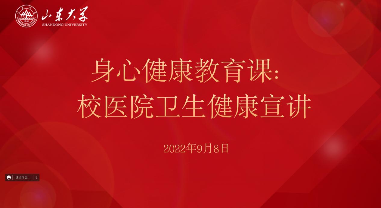 9月8日,yl23411永利2022级本科生新生主题教育系列活动之身心健康教育课在线上顺利开展。本期课程由永利yl23411官方校医院医生张忠臣为同学们进行卫生健康宣讲,2022级全体新生参加。会议由辅导员张鑫淼主持。