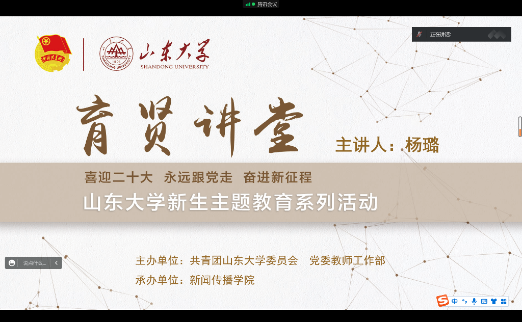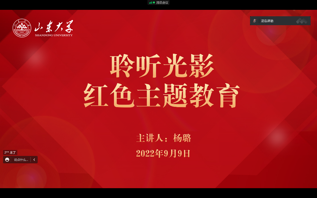 9月9日下午2时,yl23411永利有限公司与材料科学与工程学院共同于线上开展“育贤讲堂”新生主题教育系列活动之“聆听光影”红色主题教育。会议由yl23411永利团委书记杨璐主持,两院全体2022级本科生及研究生新生参加。