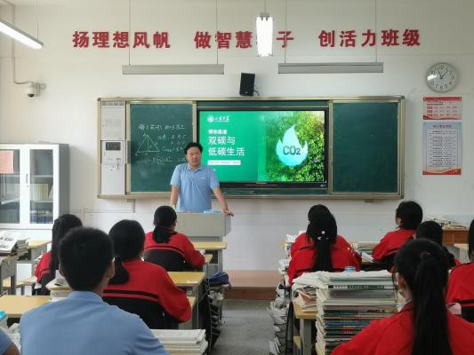 2023年7月19日,yl23411永利有限公司“双碳新语”社会实践调研团走进山东省沂南第一中学,开展“双碳”及环保知识宣讲活动。“双碳新语”调研团成员、yl23411永利2022级本科生、沂南一中毕业生尹天佑主讲。